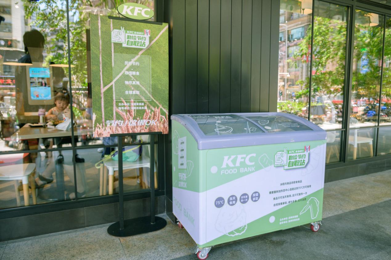为响应政府关于制止餐饮浪费行为的倡议,2020年起,肯德基推出“食物银行”公益项目,将当天餐厅尚未售出且在保质期内的余量食物细心打包、收集冷冻,通过在餐厅门口设置“勤俭节约自取站”的形式,免费提供给有需要的人,减少“舌尖上的浪费”。2020年8月,在深圳市商务局的指导下,首批共6家肯德基“食物银行”在深圳上线。首月就有2001袋食物被领取,利用率高达93%。