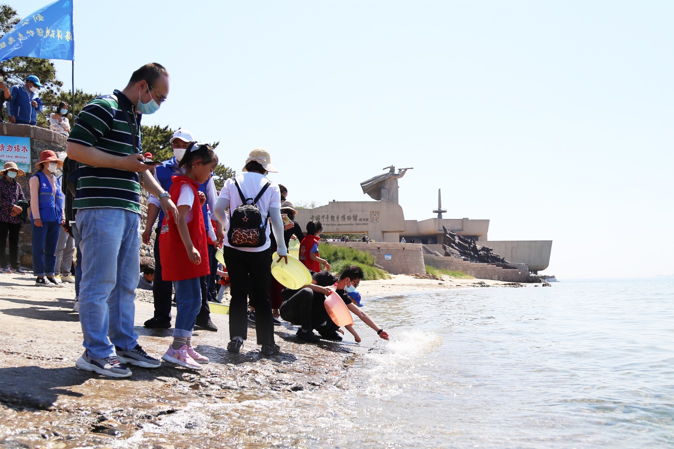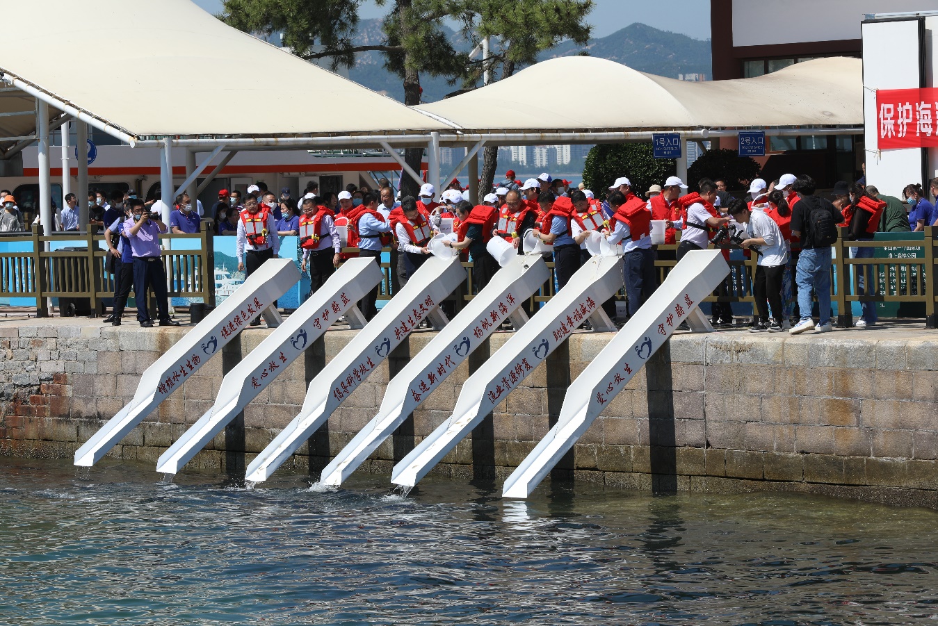 启动仪式结束后,与会人员与爱心市民一起,开展增殖放流活动,将鱼苗放归大海。