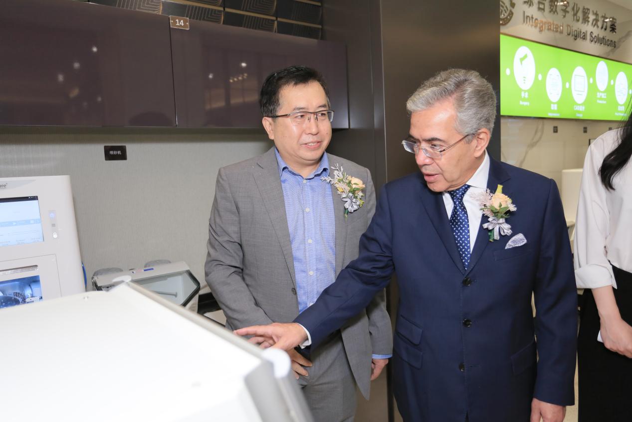 劲松口腔国际部首席医疗官汪晓晖院长为阿尔及利亚驻华大使、京城俱乐部会员艾哈桑阁下介绍精准数字化口腔诊疗中心