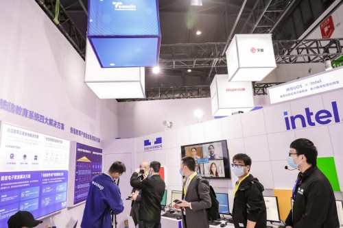 另外,在微机展示区,统信教育联合英特尔,使用英特尔NUC搭载统信UOS操作系统,深度融合教育创新应用,助力教育智慧化转型;在教学展示区,现场还原教师课堂场景,体验四大应用场景,感受国产化智慧教学解决方案;在办公展示区,统信教育版针对性的适配教学管评考五大生态系统,全方位满足学校办公使用场景,统信教育版兼容适配组合共计100000+。
