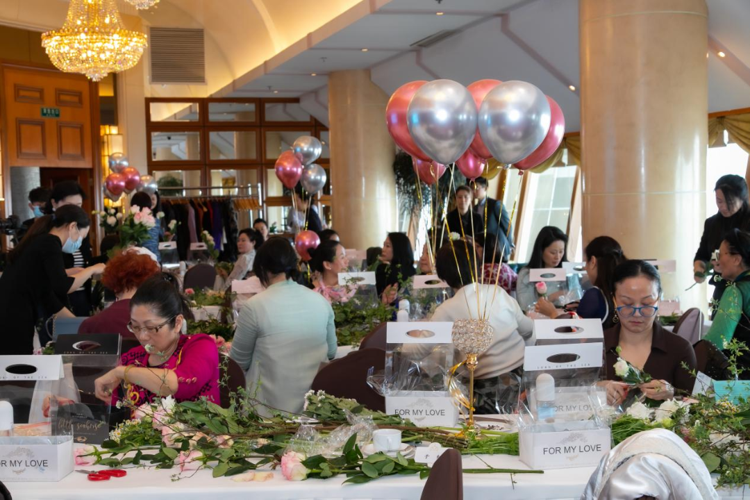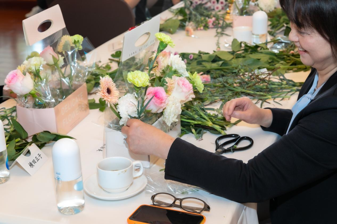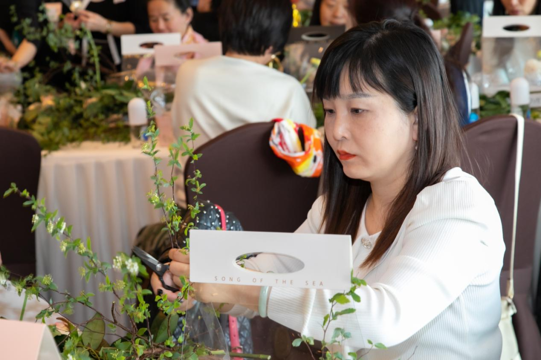 在简短的开场之后,活动正式开启插花艺术之旅,随着琳琅满目、缤纷多彩的花材铺满桌面,嘉宾们迅速沉浸在花艺手作的喜悦气氛当中。