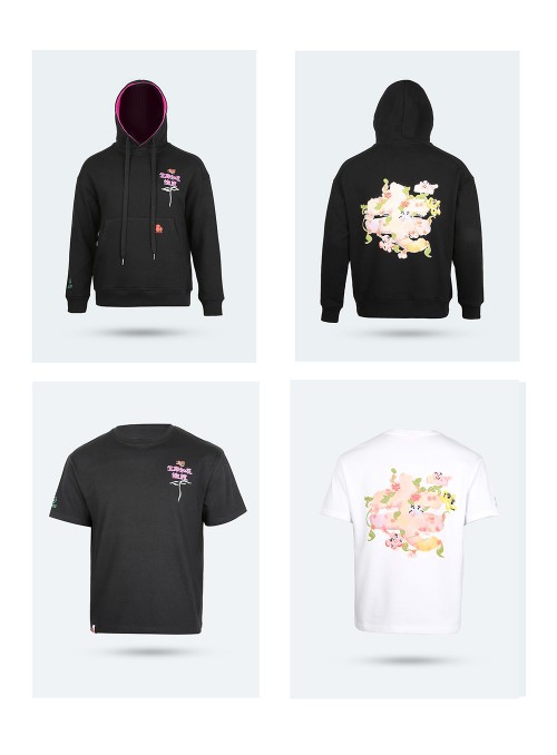 此次联名系列,围绕“生命如花绽放”主题图案展开,并将图案巧妙的应用于卫衣、文化衫等产品之上,思凯乐优质面料材质与产品工艺,与“戈”字与“生命之花”的主题设计图案的艺术化展现使得整体产品大放异彩。
