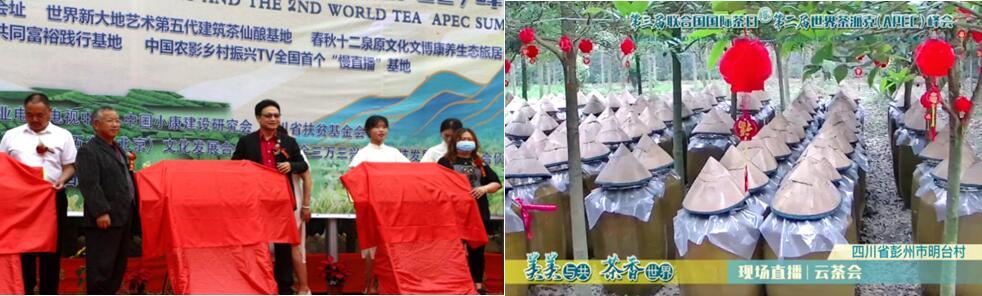 四川雅安叶山村由四川省扶贫基金会产业部部长郑景涛,四川省扶贫基金会雅安分会会长王超英揭牌;彭州明台村分别由大会主席车夫,四川师大谢元鲁教授,致和街道办主任祁中华,明台村总支部书记谢贤斌,明台村总支部副书记柳万丽,明台村老龄支部书记庄井志,明台村企业支部书记邵远久揭牌。四川茶海"云旅游",慢直播镜头定焦四川雅安叶山村和四川彭州明台村;四川雅安叶山村和四川彭州明台村成为联合国国际茶日暨世界茶派克(APEC)峰会永久会址。