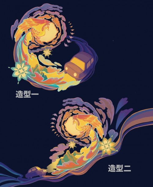 三幅获奖作品通过不同的表现形式,给人留下了深刻印象。金奖作品展现的是一辆车头高高顶起、大开车灯,势不可挡的汽车,简笔的形式表达出了完整意蕴同时充满了动感与力量感;银奖作品选用年轻的配色加上丰富的设计元素,彰显出十足的国潮科技范;铜奖作品选用“凤凰”象征车灯带来的光明,色彩复古明丽对比鲜明,带来丰富的视觉观感。
