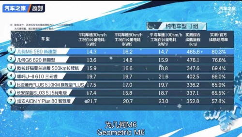 作为一台上市不久的车型,几何G6与其兄弟车型几何M6就在汽车之家2022冬季实验室中,分别斩获20万以下组别续航达成率前2。在总榜中,其兄弟车型几何M6以80.3%的续航达成率,与保时捷、宝马共同跻身冬测榜TOP3。可见,几何G6的表现也不会差。