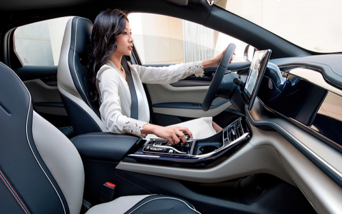 除了真续航以外,几何G6还搭载了基于HarmonyOS开发的超电智能座舱,通过8G运存+128G存储空间的配置,实现以快为核心的智能化体验。并且在中控屏设计上打造出了堪比Pad般的清晰流畅体验,可以让大部分驾乘者更快的学习使用。