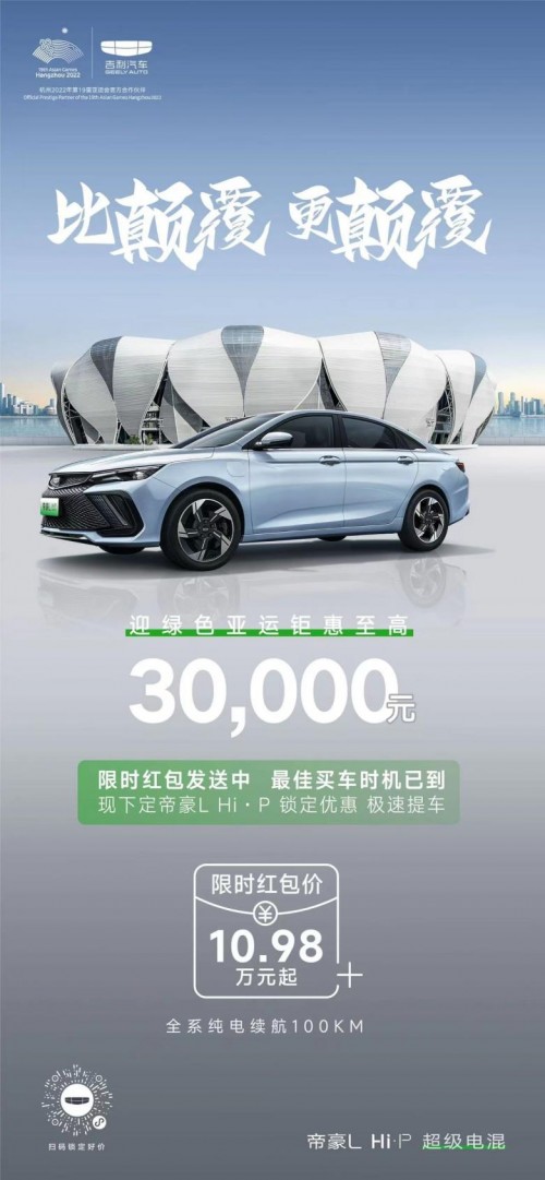 而消费者买车要擦亮眼睛、躲开套路的重点在于,你不是去看车企报价的金额,而是要去算你真正要出资的金额。比如帝豪L Hi·P,在车企都在让利消费者的大环境下,吉利也拿出了巨大的诚意,推出了迎绿色亚运钜惠至高30000元的限时优惠,这是真金白银的现金红包,满打满算购买一辆帝豪L Hi·P也就10万出头,顶配价也不到13万。这样一比,两款车谁更划算,明眼人一看就懂。