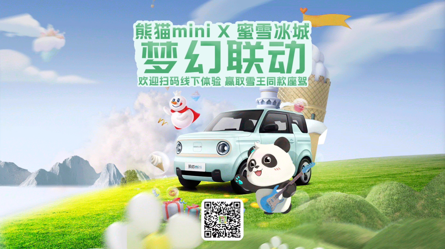今年春节后上市的吉利熊猫mini,是为年轻用户打造的纯电微型车。在外观上,熊猫mini采用熊猫式仿生设计,大眼萌前灯、圆滚滚撞色饰条与熊耳后视镜组成国宝萌眼前脸,搭配14英寸萌爪轮毂;同时64英寸全景天幕视野开阔,内外兼修。此次跨界联名的蜜雪冰城✖️熊猫mini “雪王座驾”,在熊猫mini本就软萌潮流的车身上融入雪王的形象,让整体外观可爱加成,雪王出街必然不同凡响。