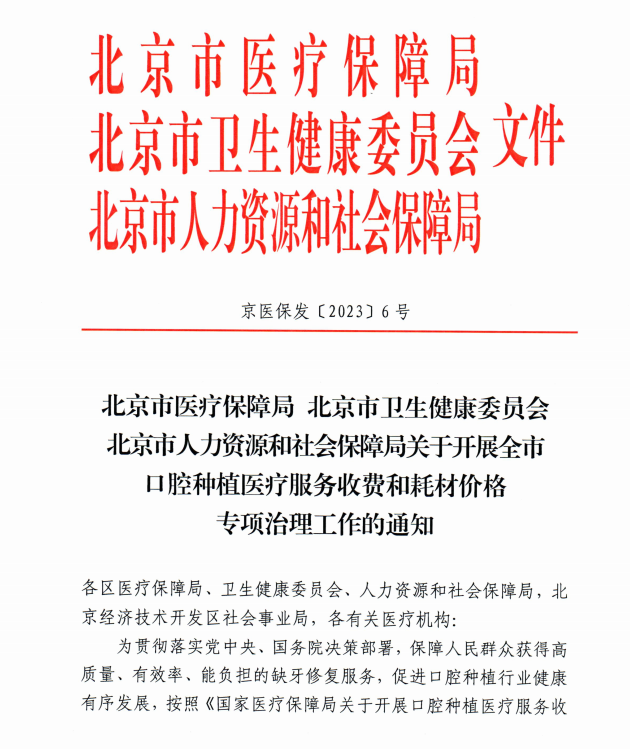 近日,北京市医保局、北京市卫健委、北京市人力社保局联合发布通知,正式发布北京种植牙集采政策,并将于4月20日全市执行,北京全市口腔服务机构,无论公立还是民营机构,均须按照统一政策执行,并对社会公开。