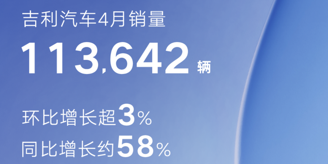日前,乘联会发布4月全国乘用车产销数据,因为上海车展的助推和价格战的消退,车市有序复苏,4月份国内狭义乘用车市场零售销量达163.1万辆,同比增长55.6%,其中新能源市场展现出蓬勃朝气,渗透率持续攀升。作为自主品牌和整个汽车行业的头部企业,吉利汽车也展现出良好的市场潜力,4月份整体销量113642辆,实现同比环比双增长,总榜排名第四。其中,新能源产品已成为吉利发展新动能,4月销量近3万辆,新能源渗透率已连续三个月实现正增长。