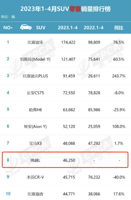 虽然未来趋势是新能源,但从目前多元化的中国汽车市场来看,燃油车依然是不可替代的主流,占据着70%的市场份额。对于消费者来说,更好更新更智能化的燃油车产品,才是他们的核心需求。基于此,吉利在积极布局新能源领域的同时,也加速电气化、智能化转型。在这一方面,博越L是吉利在智能SUV市场的王炸产品,4月销量10845辆,已连续6个月销量过万台,上市至今累计销量近8万辆,也是今年1-4月份SUV市场上的热销单品,销量榜单排名第八,超过本田CR-V等一众合资劲旅。