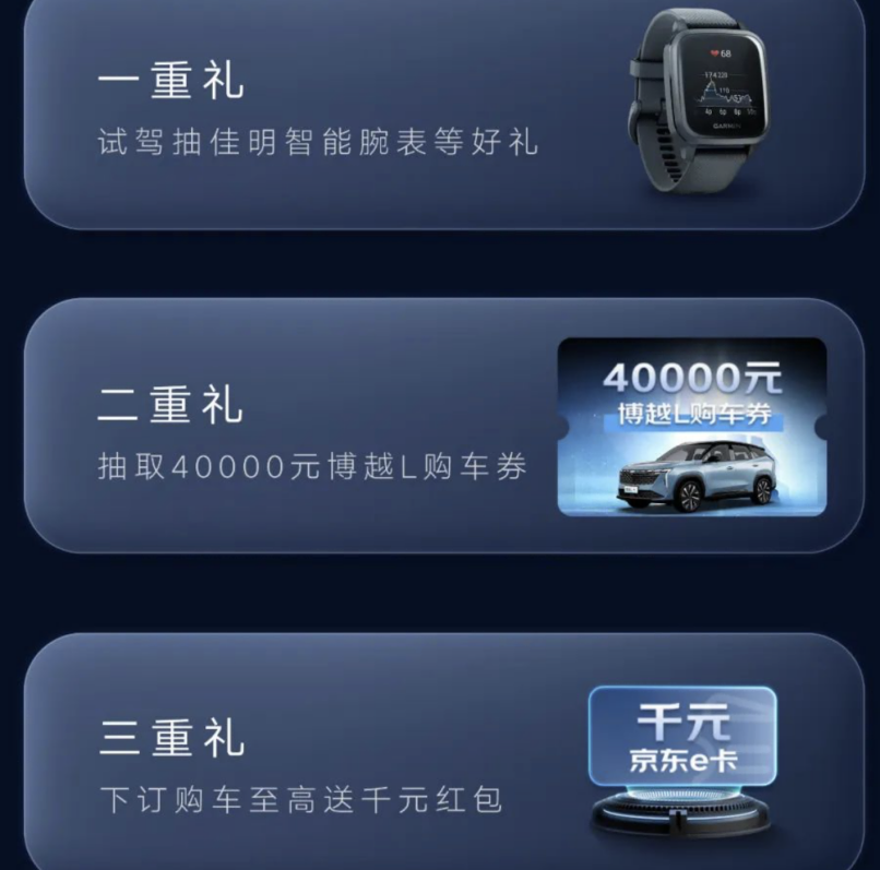 博越L的焕新归来为博越家族重回紧凑级SUV销量第一阵营注入了全新动力,更懂年轻人、更加智能化的博越L也将持续为用户带去超越期待的出行体验。日前,博越L活动多多,登陆王者荣耀前往“社区-发现-生活福利”专区,即可领取博越L专属399元购车券。同时,博越L还牵手Garmin品牌,推出试驾博越L送豪礼活动,即日起至5月24日,上京东平台下单即享抽佳明智能腕表、抽4万博越L购车券、至高送千元红包等三重好礼,此外还有限时至高综合补贴20500元购车福利。机不可失,赶快行动吧!