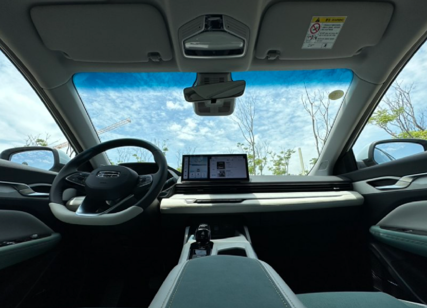 进入车内,帝豪L Hi·P的座舱以简洁为主,绿色+白色的色彩搭配不仅好看,而且也营造了一种很轻松惬意的氛围,人进入车内之后很容易就能放松下来。帝豪L Hi·P的内饰设计极为简洁清爽,基本取消了传统的物理按键,整个内饰的功能都集中在中控大屏里,而且中控大屏+液晶仪表盘的界面设计也非常符合我的需求,各个功能非常清晰明确,内置的吉利银河OS车机系统用起来也很顺手。