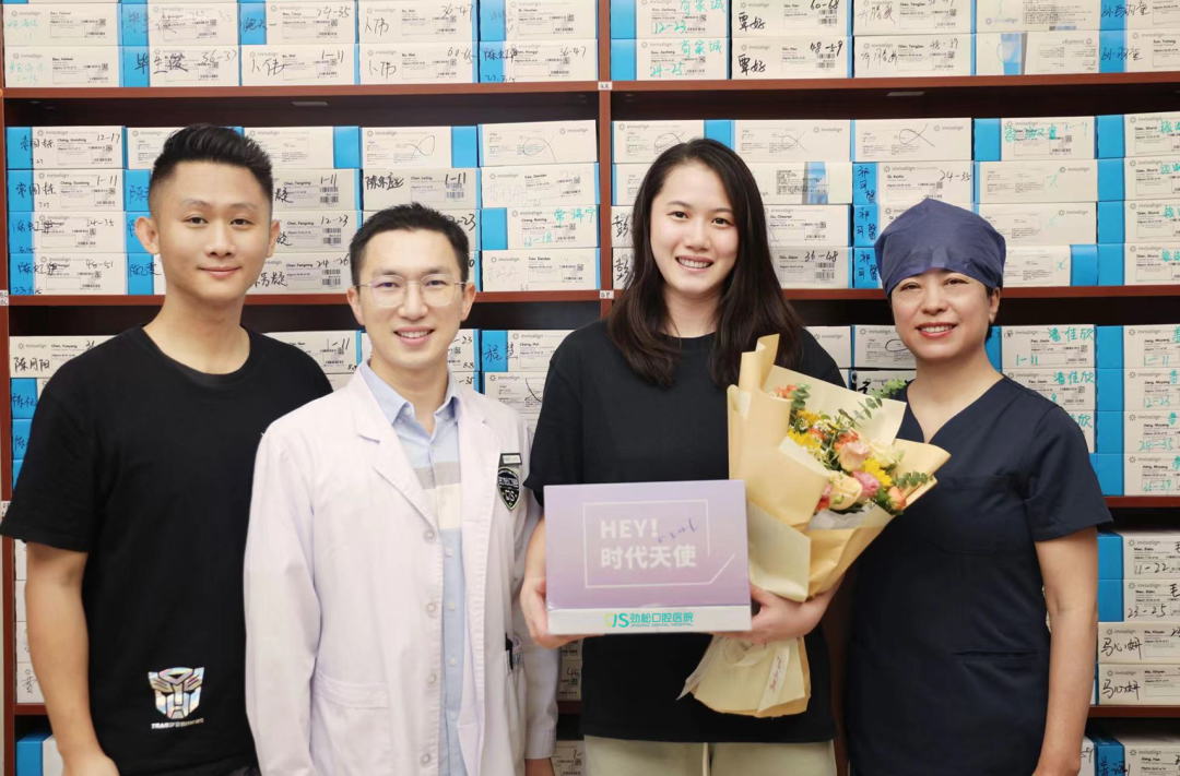 复诊当日,劲松口腔和时代天使为郑雨举行了简短的毕业仪式,向其表示祝贺。