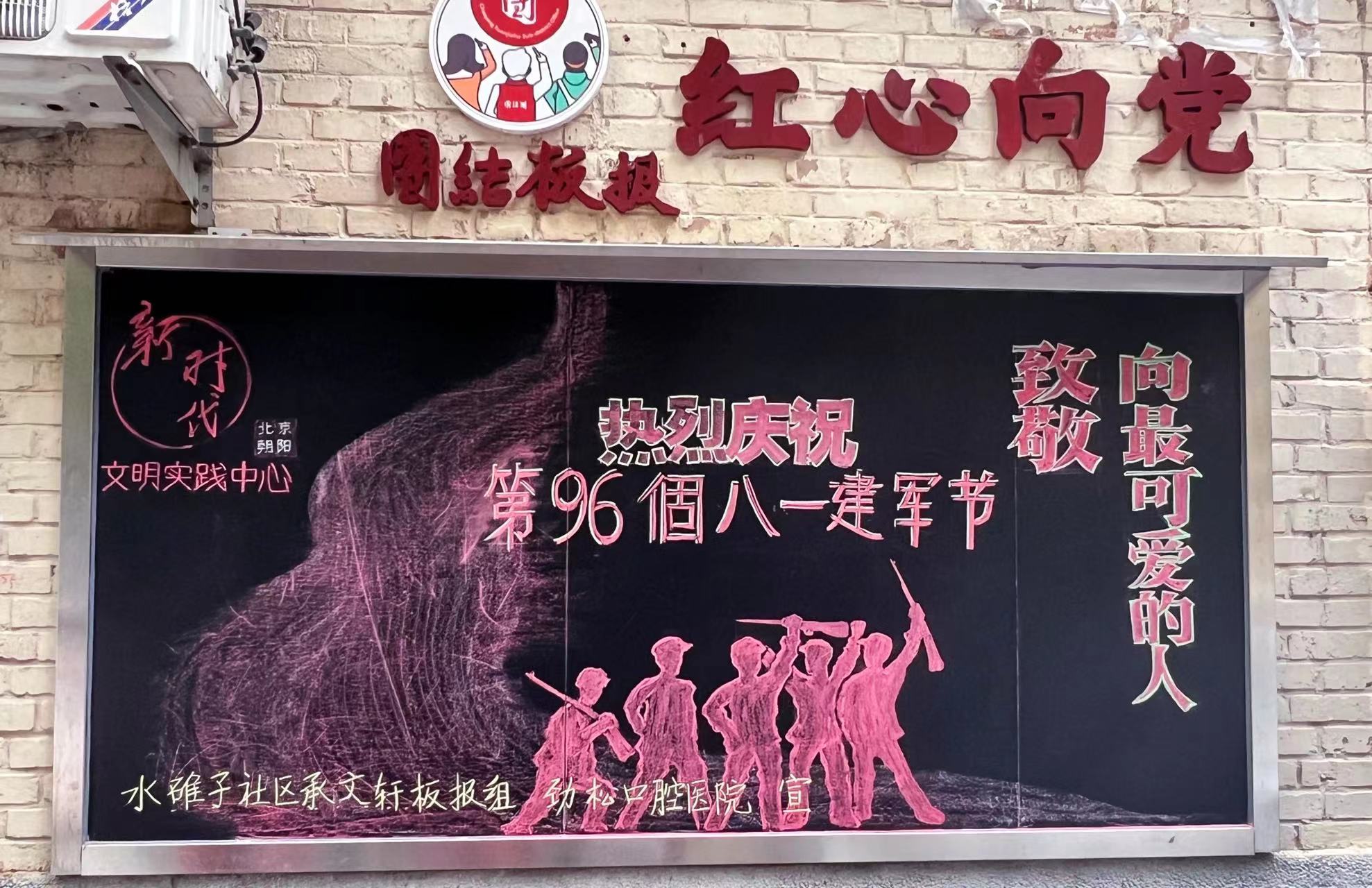 近日,在第96个八一建军节来临之际,劲松口腔受邀协同北京市朝阳区水锥子社区,共创社区“团结板报”,进一步拓宽“社企共建”多元化形式,宣传拥军文化,庆祝第96个“八一”建军节。