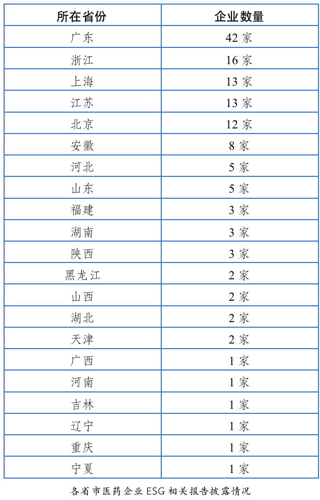 ● 地域分析根据方维致远统计的数据显示:截至2023年第二季度,我国生物医药行业相关上市公司(A股市场)有470余家,积极披露ESG相关报告的有147家。其地域分布情况如下图所示: