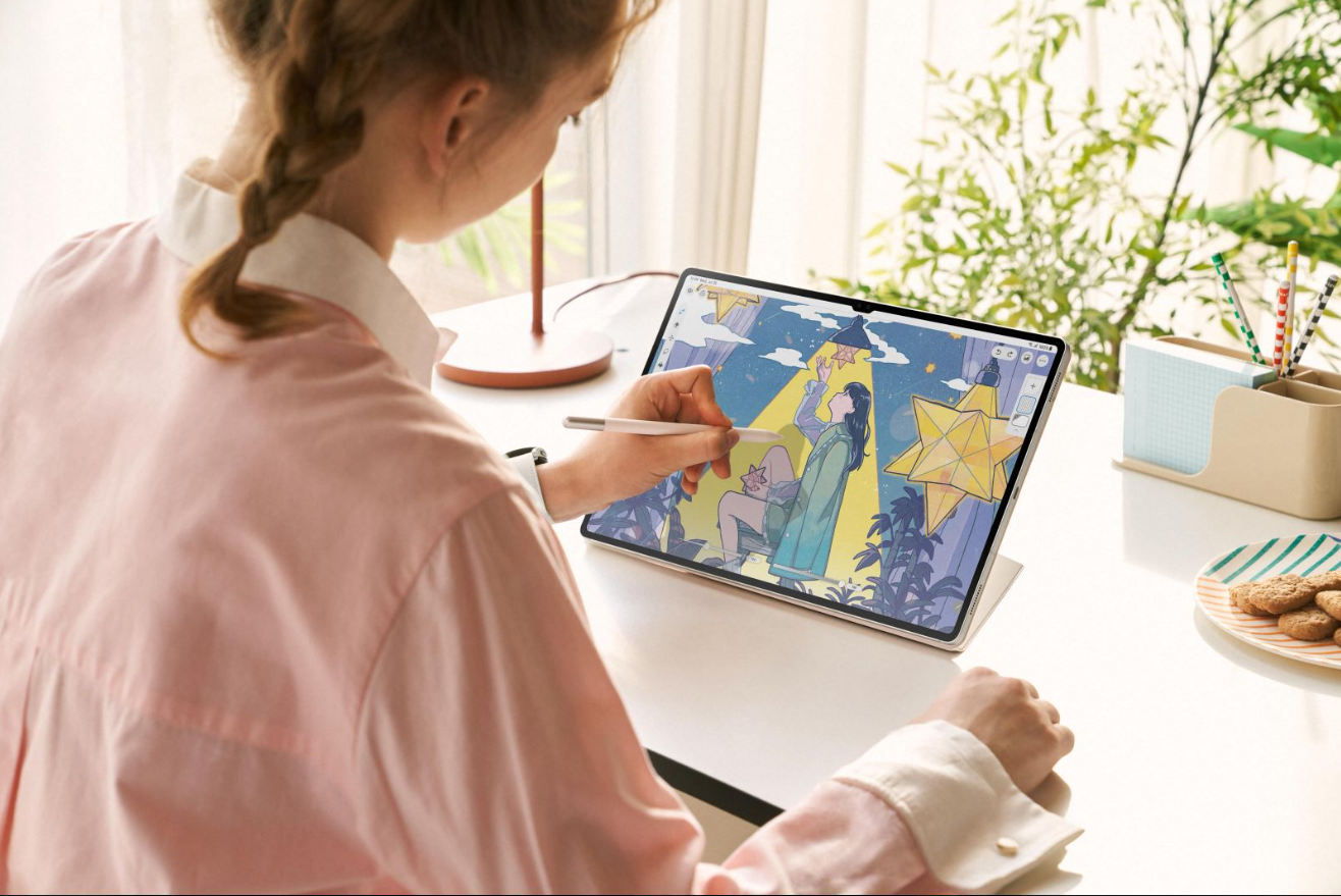 通常写生创作需要在阳光充足的情况下进行,这就十分考验平板大屏对光线的适应能力。三星Galaxy Tab S9系列搭载的Vision Booster技术,能够完美解决我们在强光的使用需求。得益于这项创新升级,屏幕可根据不同的光线强度自动调整对比度和色调,促使画面与强光匹配的同时,保持出色的清晰度与亮度。再加上十分适合绘画的16:10显示比例,可以任文思泉涌、想象飞驰,享受户外写生带来的乐趣。此外,三星Galaxy Tab S9系列还采用了支持HDR10+技术的第二代动态AMOLED屏幕,显示效果堪称震撼,色准、色域表现也十分出众,可以将我们的绘画作品展现得更加赏心悦目。