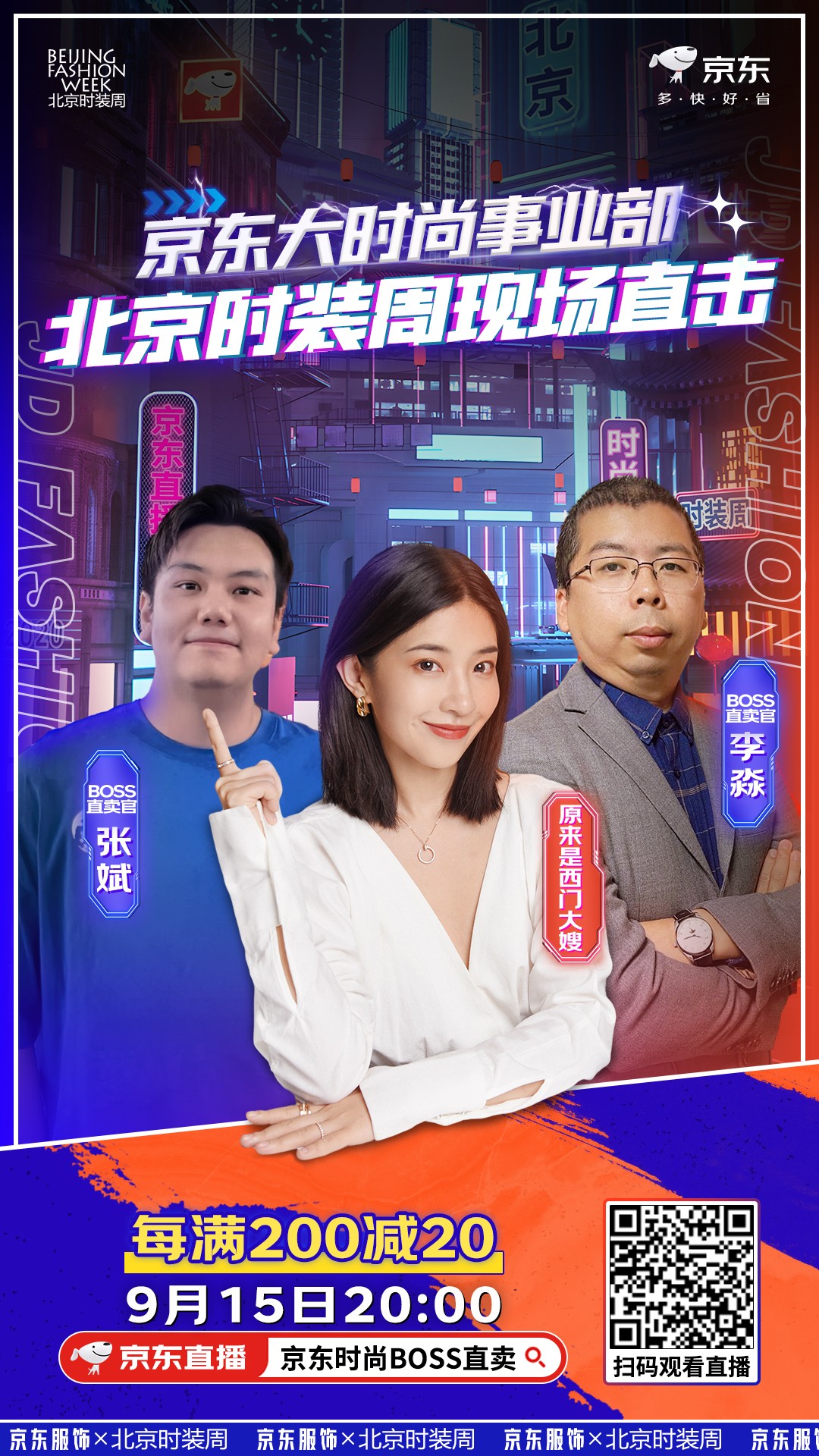 此外,为了让更多消费者感受北京时装周的盛况,9月15日晚8点,“京东时尚BOSS直卖”直播间对开幕大秀进行全程直播,同时消费者也可以“即看即买”,在模特走秀的同时在京东下单自己心仪的走秀同款服装。同时,时尚自媒体人“原来是西门大嫂”与京东服饰BOSS直卖官也将在直播间一起回顾点评北京时装周精彩瞬间,分享早秋穿搭趋势,畅聊穿搭热门话题。