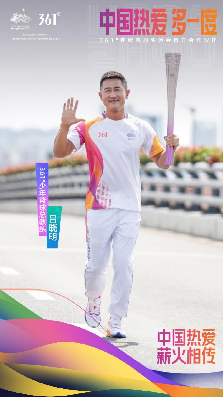 篮球名宿吕晓明、跳绳新星陈嘉伟作为各自领域的专业运动员,也在杭州亚运火炬手之列。他们以矫健的身姿,携手361°将“中国热爱”传递给下一棒。
