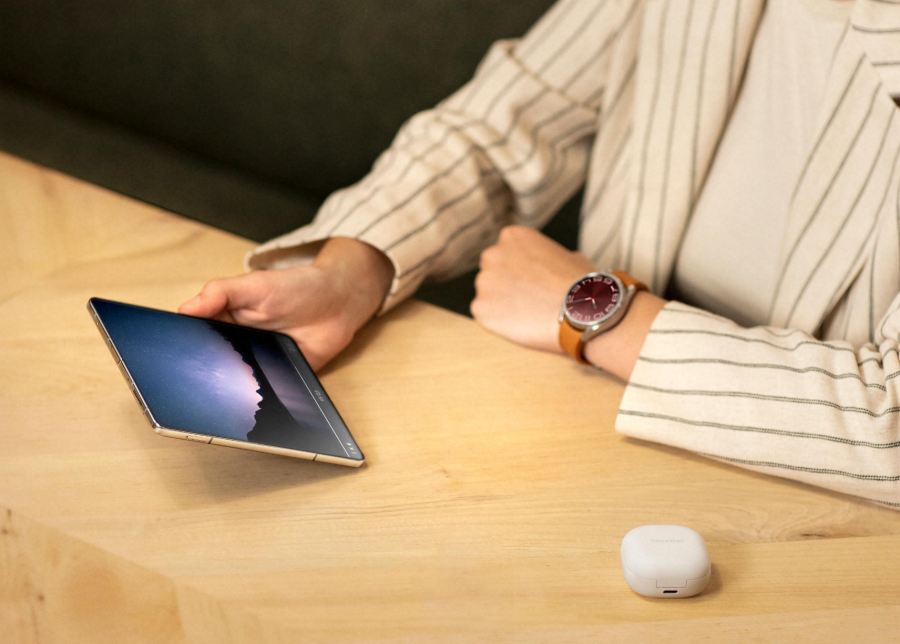 在支持多角度旋停的基础上,三星Galaxy Z Fold5实现了交互体验的再度革新,为用户的生活与工作提供更多便捷。例如,工作中用户可在立式交互模式下一边进行视频会议,一边使用S Pen记录会议内容;刷视频或追剧时,手机在旋停状态下,下半屏会自动呼出立式交互触控板,用户可在持续播放的前提下,快速进行视频进度、音量以及屏幕亮度等设置,获得不间断的观看体验。如果独自外出打卡,在网红地标前将手机旋停至合适角度,并放在平面上,即可获得丰富视角的免手持拍摄,捕获充满创意的个性大片。