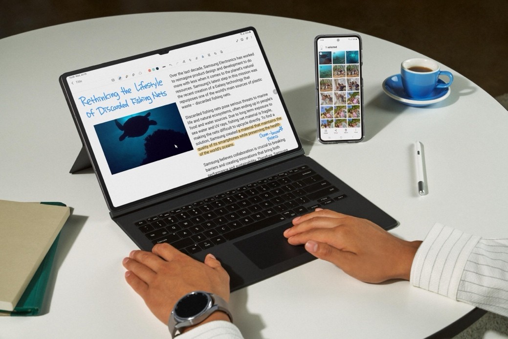 搭配三星Galaxy Tab S9系列升级的多任务处理能力,职场人还能在工作中随时分屏开启多个应用程序,调用更多窗口,全览工作时的每一个进程;即使是身处远程视频会议时,也可以同时兼顾更多事项,不耽搁手头的工作任务与会议记录。此外,将三星Galaxy Tab S9系列与额外选购的键盘保护套、鼠标等外设搭配时,我们还可以开启设备的DeX模式,以更适合键鼠交互的操作逻辑让办公效率更上一层楼。尤其是三星Galaxy Tab S9系列还支持多重控制与S互传,在与三星Galaxy智能手机协作时,可以更方便的同步文件对齐进度,不错过每一个工作中的小细节。