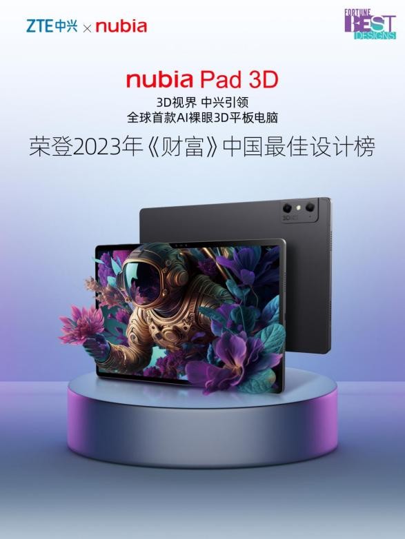 nubia Pad 3D荣登2023年《财富》中国最佳设计榜