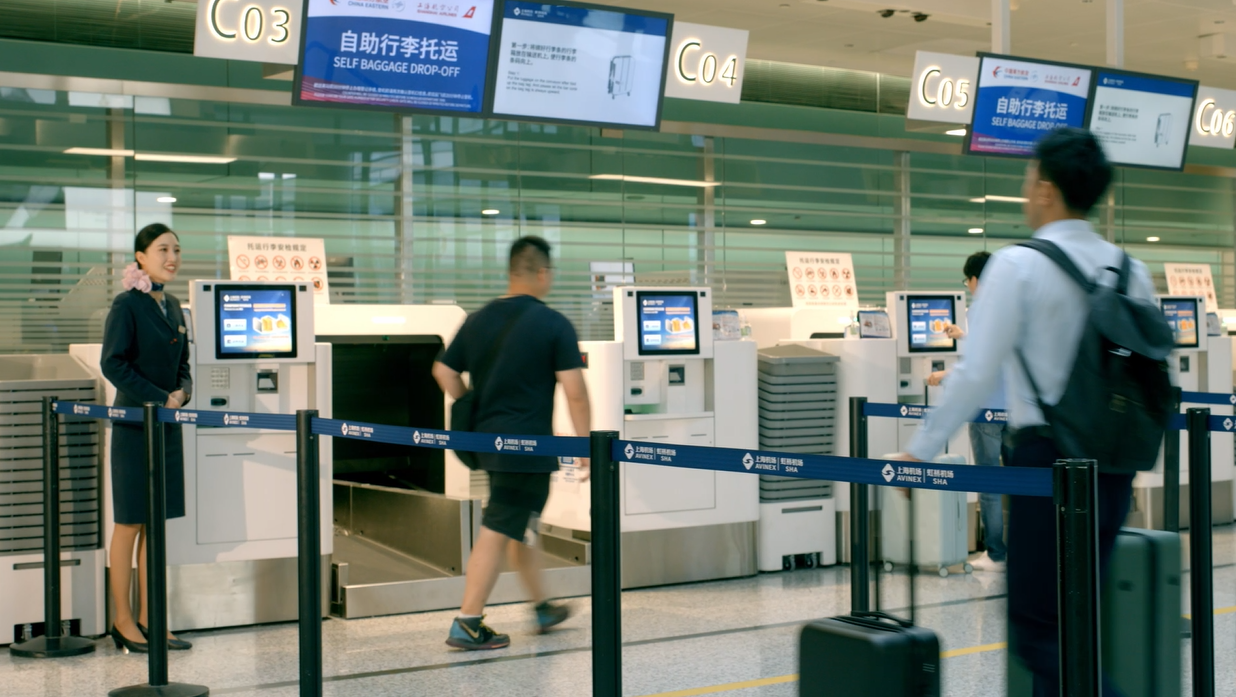 “智慧出行”作为一种全新的服务模式,包括”一步到位“值机、”一张脸“走遍机场、自助行李托运等等,为人们大大节省了时间和精力。据统计,旅客通过人工柜台拿到登机牌平均要花6分钟,而通过自助值机设备办理,这一时间缩短到6秒钟,避免了排队等候的麻烦,轻松实现从容出行。