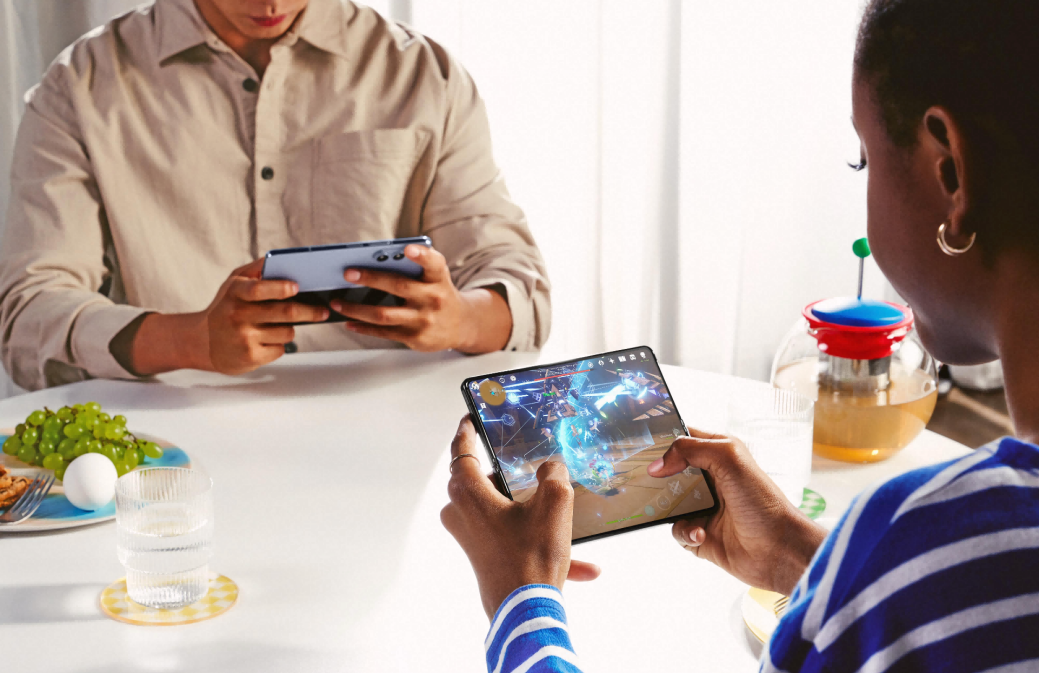 对于注重品质体验的Z世代来说,三星Galaxy Z Fold5能够以不同角色拓展应用场景的广度和深度。完全展开手机观影追剧时,7.6英寸大屏如同一部平板,用户不仅能获得身临其境般的震撼视效,还可以通过峰值亮度高达1750尼特的第二代动态AMOLED显示屏让清晰体验始终在线。如果在旋停形态下刷视频,用户还能操作升级的立式交互触控板调节视频进度、音量和屏幕亮度等参数,享受到不间断地体验。此外,三星Galaxy Z Fold5还能化身游戏掌机,让玩家畅享虚拟世界。