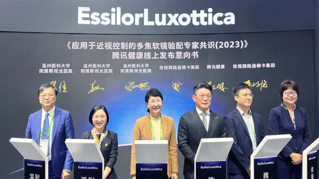 11月6日,在2023年第六届中国国际进口博览会上,腾讯健康携手依视路陆逊梯卡集团线上首发《应用于近视控制的多焦软镜验配专家共识》,并发布科普系列视频,邀请来自全国权威眼视光专家对共识进行专业解读和相关防控知识科普,助力行业规范发展,推动公众尤其是儿童青少年的眼健康知识普及和认知水平提升。