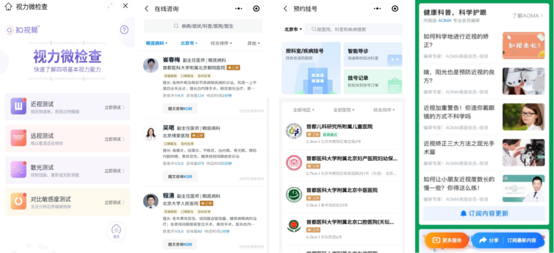 视力检测、在线问诊、科普宣传等一站式健康服务
