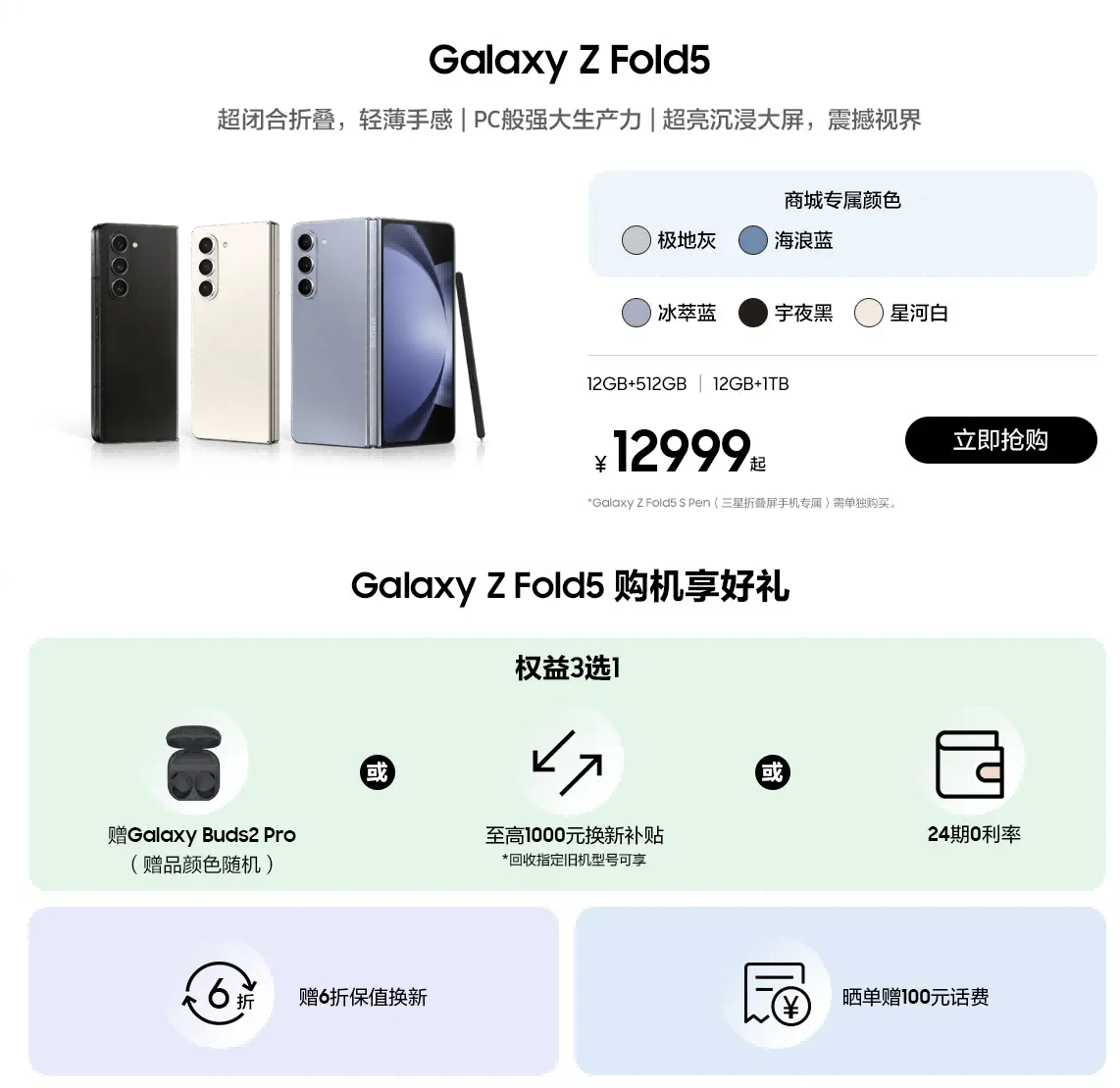 好礼3选1+6折保值换新 三星Galaxy Z Fold5热销中