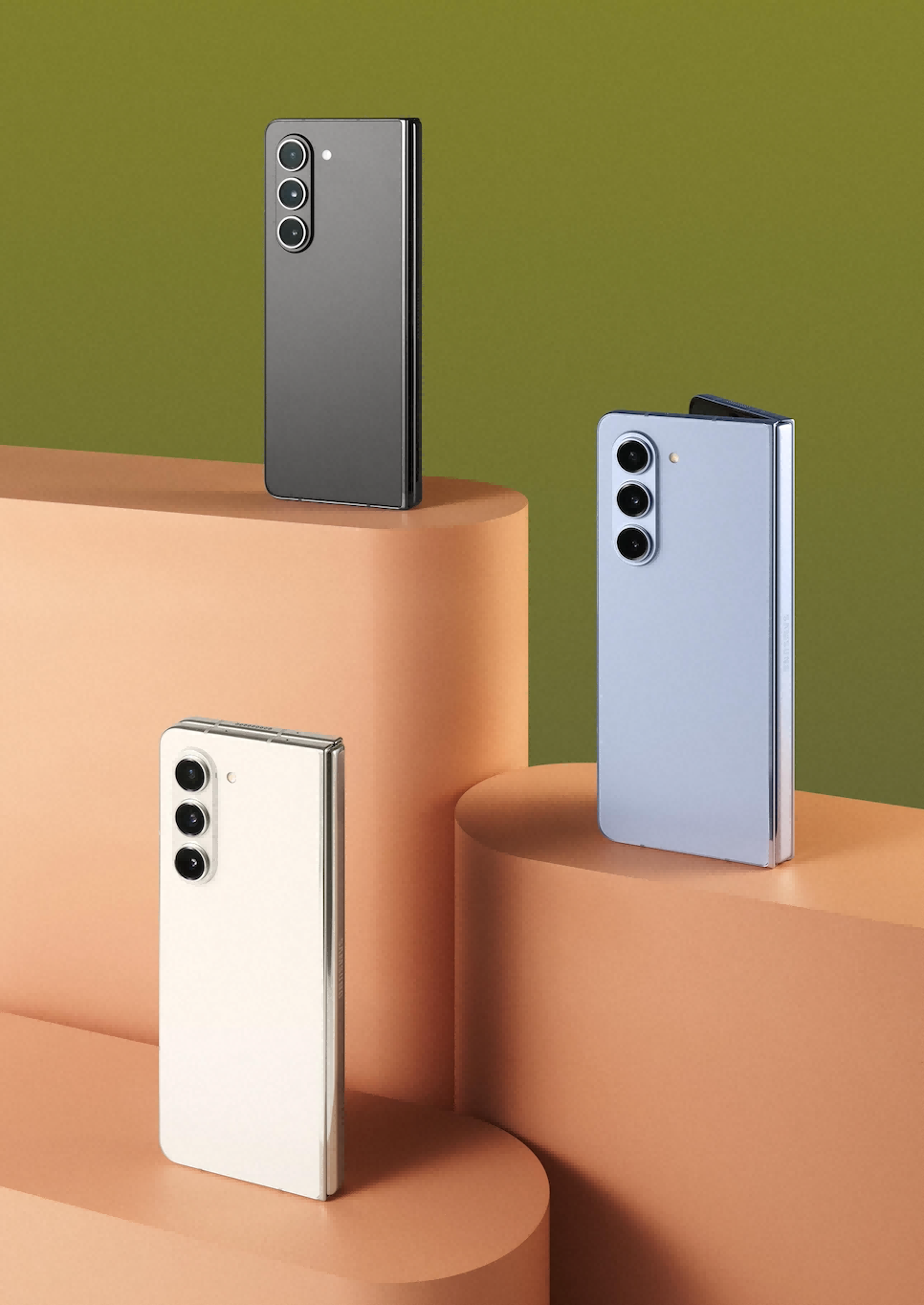 配色方面,三星Galaxy Z Fold5除了宇夜黑、星河白和冰萃蓝三款充满自然色彩元素的配色,三星商城为追求时尚个性的用户还提供了极地灰、海浪蓝两款三星商城专属色,用户可以根据自己的喜好进行选择。