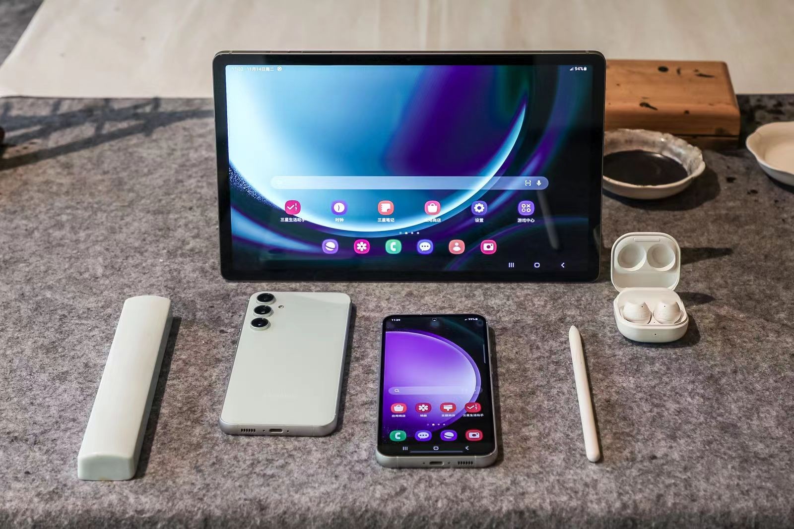 除了手机新品之外,三星Galaxy Tab S9 FE系列平板电脑和三星Galaxy Buds FE蓝牙无线耳机的表现同样惊艳。其中,三星Galaxy Tab S9 FE系列不仅标配S Pen触控笔,还支持IP68级防尘防水,搭配上显示效果惊艳的高清显示屏与高性能Exynos 1380 芯片组,带来丝滑、流畅且快速的多任务处理、流媒体和游戏体验;三星Galaxy Buds FE凭借标志性的人体工学设计,出色的降噪功能及丰富的低音音效,为更多用户带来澎湃的听觉享受与长时间舒适的畅听体验。