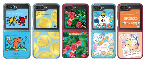 不止于此,三星还为Galaxy Z Flip5打造了样式繁多的手机保护壳,比如透明保护壳、生态皮保护壳、智能主题保护壳、指环式硅胶保护壳等,让用户能够进一步装点手机的外观。如果你希望展示出手机本身的靓丽配色,又要给手机来层保护,那么最好的选择是透明保护壳。想要提升握持的手感,指环式硅胶保护壳最为合适。三星还推出了基于全球知名人物形象和艺术作品设计的Eco-Friends系列保护壳,包括TOILETPAPER、Smiley、凯斯·哈林(Keith Haring)、迪士尼、漫威及宝可梦等,如果你是这些IP的粉丝,那一定要入手这个系列的保护壳。