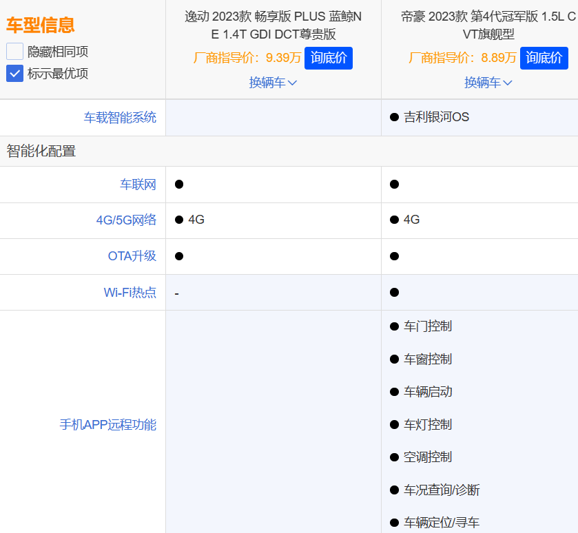 随着汽车技术的快速发展,A级车市场竞争更加激烈。而自主品牌凭借长期的技术沉淀和产品迭代,在10万级家轿市场的优势变得明显。今天我们就对吉利第4代帝豪冠军款1.5D+CVT 旗舰型和长安逸动PLUS 1.4T+DCT 尊贵型这两款车型进行全面的对比,看看究竟哪款车更值得购买。