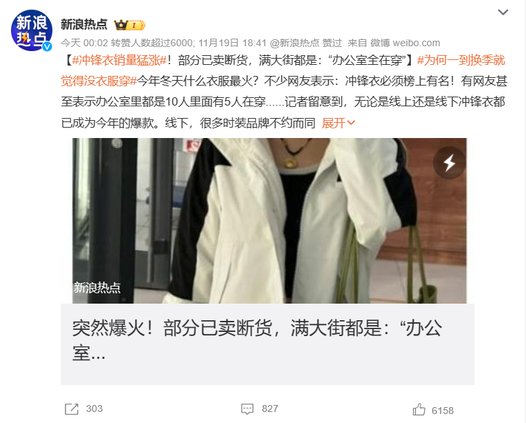 近期全国多地气温断崖式下降,保暖服饰迎来热销,尤其是冲锋衣更是爆火,成为今冬保暖服饰的新晋“顶流”。近期,冲锋衣销量猛涨话题引发网友热议,不少网友都表示:“办公室里10人里5人在穿”。京东销售数据显示,11月以来,冲锋衣裤等品类成交额同比增长超150%。此外,今年1-8月份,户外品牌凯乐石成交额同比增长270%、骆驼同比增长400%;国产户外鞋服品牌冲锋衣裤销量增速远超国际品牌。