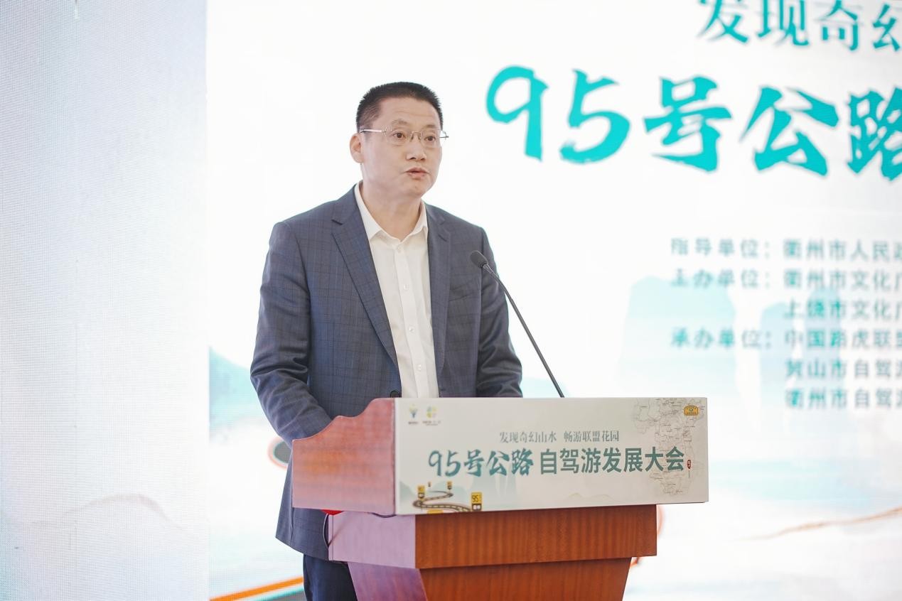 衢州市文化广电旅游局党委委员、副局长陈宏新在致辞中表示,近年来自驾车旅游以自由、方便、个性化等独特的魅力受到游客青睐,迅速成为旅游市场的重要组成部分,自驾游群体日益成为衢州旅游的重要消费群体。以“自驾”为契机,以95号公路自驾游系列活动为抓手,整合衢州文旅资源,丰富旅游产品和线路,全面打响95号公路金名片,力争将95号公路自驾游打造成全国自驾游的典范。