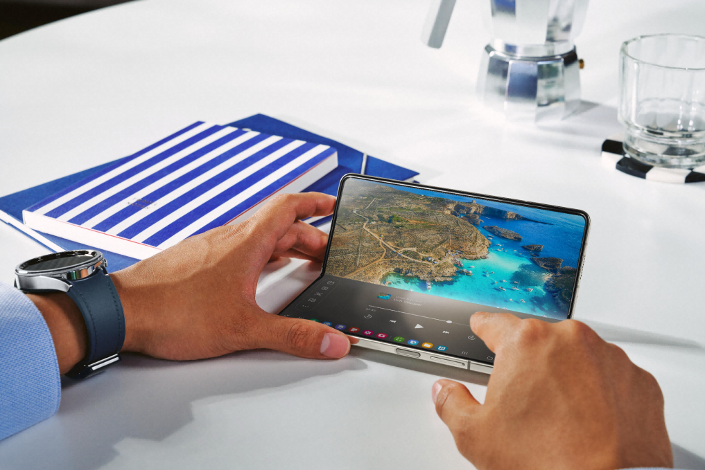 如果说分屏多任务让我们看到了折叠屏不同于传统智能手机的优势,而立式交互模式更是打破了传统智能手机的壁垒,真正解放双手。在三星Galaxy Z Fold5独特的立式交互模式下,用户可以一边视频通话,一边整理家务或者处理手边的工作。与好友外出游玩合影时,用户只需将手机摆在桌面,就能运用立式自由拍摄模式进行免手持摆拍摄,让大合照不再少一人。