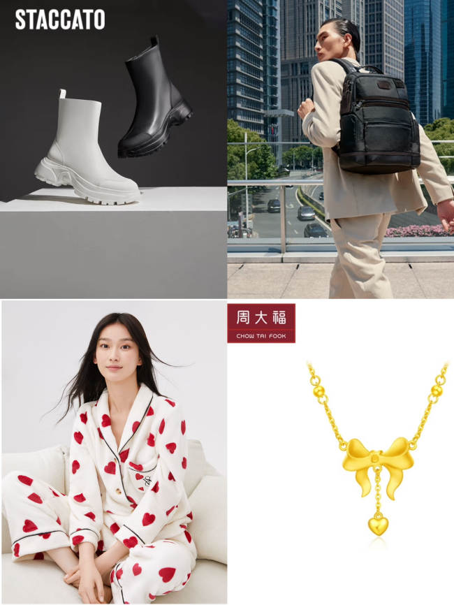 冬季出行保暖从脚下开始,鞋靴品类带来骆驼工装大黄靴、思加图厚底时装短靴等保暖鞋靴,还有500元大额券限量抢的超值福利;箱包品类中,TUMI简约通勤双肩包、新秀丽ENOW系列行李箱等大牌箱包热卖;内衣品类带来ubras愿望系列内衣礼盒、维多利亚的秘密法兰绒家居服等;黄金珠宝品类中,周大福爱心蝴蝶结项链、周生生黄金羽毛吊坠等爆款新品走红,让秋冬穿搭更有层次感。