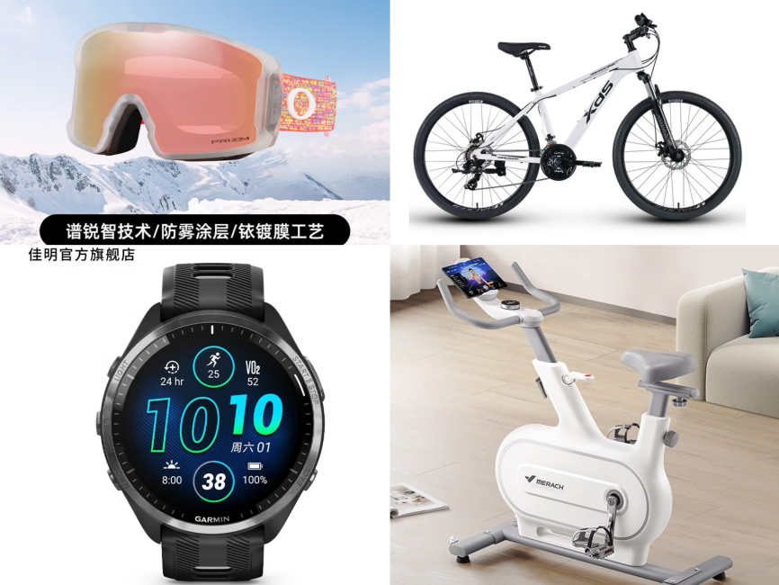 冬季滑雪、骑行等户外运动依旧火热,京东服饰美妆12.12带来BURTON伯顿CYCLIC滑雪服、欧克利雪镜、喜德盛山地自行车、佳明运动手表等多品类专业运动装备,更有户外装备不止5折的超值优惠,让户外运动爱好者尽情驰骋。此外,佑美U3H家用跑步机、麦瑞克室内静音动感单车等适合居家锻炼的好物也在京东12.12期间热销。