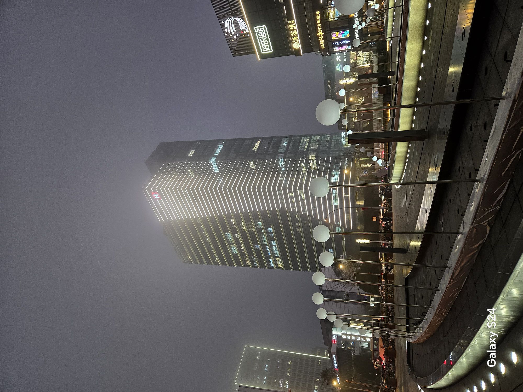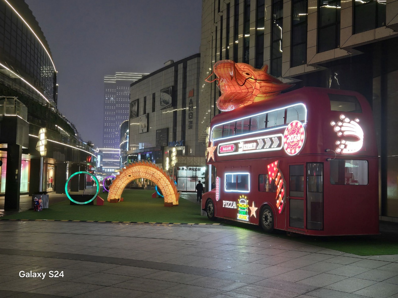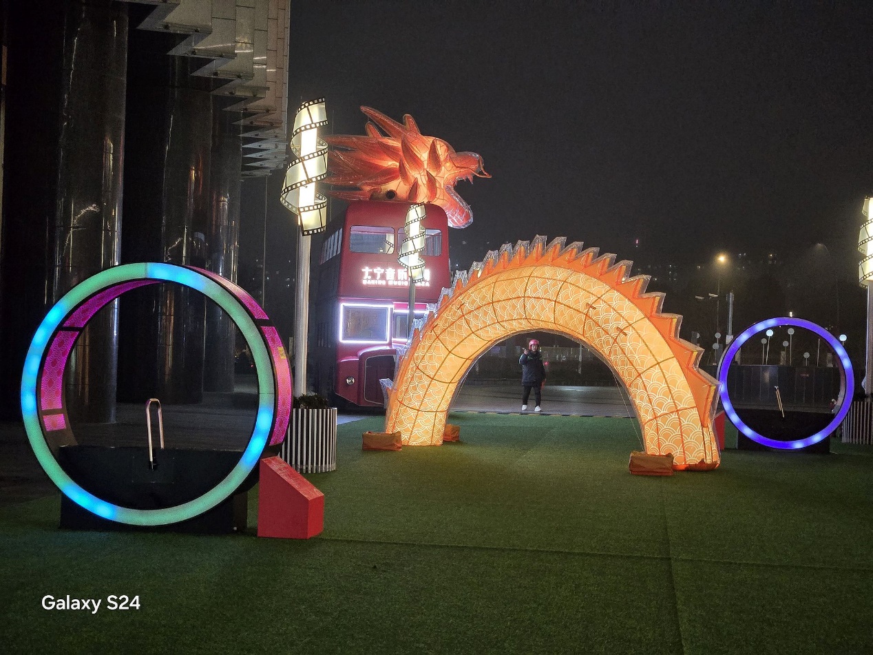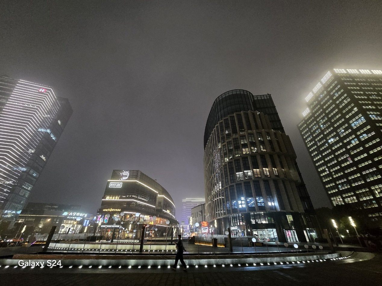 在夜景拍摄场景中,三星Galaxy S24表现依然让人满意。由于其利用AI图像处理器改善弱光环境下的成像效果,保持了在夜间对于复杂光线良好的控制力,通过进一步压低曝光时间和感光度来保证画面的纯净度,所以我们看到该机的夜景样张画面通透明亮,几乎看不到什么噪点。即便是在复杂的灯光环境下,整体画面的曝光度也能控制得很自然,尤其是高光部分,得到了很好压制,没有出现过曝的情况。