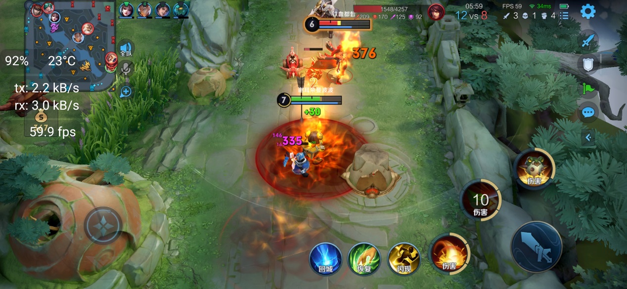 依照惯例,我们将《王者荣耀》的配置全部调整至最高画质和帧率,很明显即便在最高设置下,游戏过程中没有半分阻碍,画面流畅,无卡顿情况,画面的刷新率也一直保持在60fps左右,一局十几分钟的游戏温度从20℃到26℃,机身没有发热的情况。