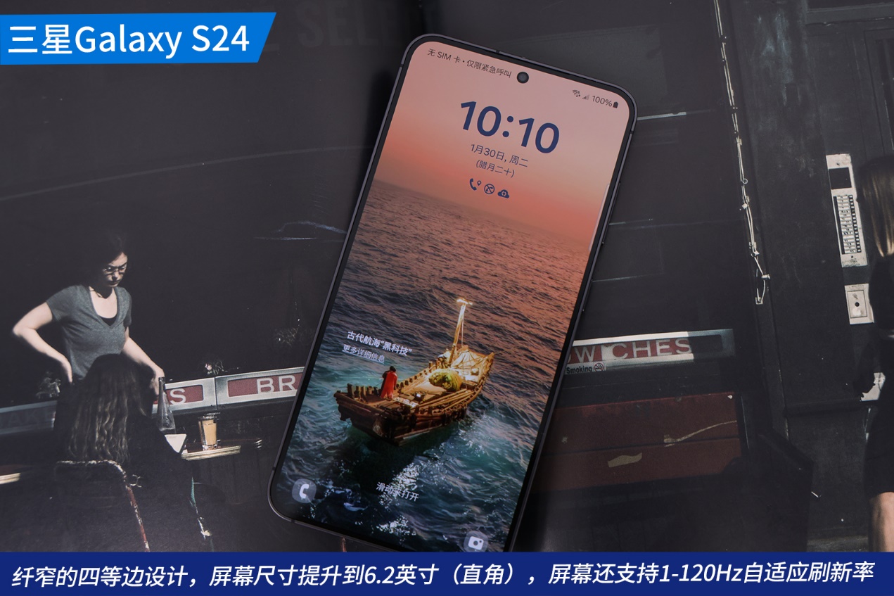 如果说轻巧是三星Galaxy S24的基本属性,那这次屏幕的全面升级则为其彰显了旗舰级的显示水准。得益于更为纤窄的四等边设计,三星Galaxy S24在保持轻巧机身的前提下,屏幕尺寸提升到6.2英寸(直角),紧凑机身一样能获得大屏体验。同时这块屏幕还支持1-120Hz自适应刷新率,拥有2600尼特峰值亮度,配合Vision Booster技术,进一步提升户外光照环境中的屏幕能见度。