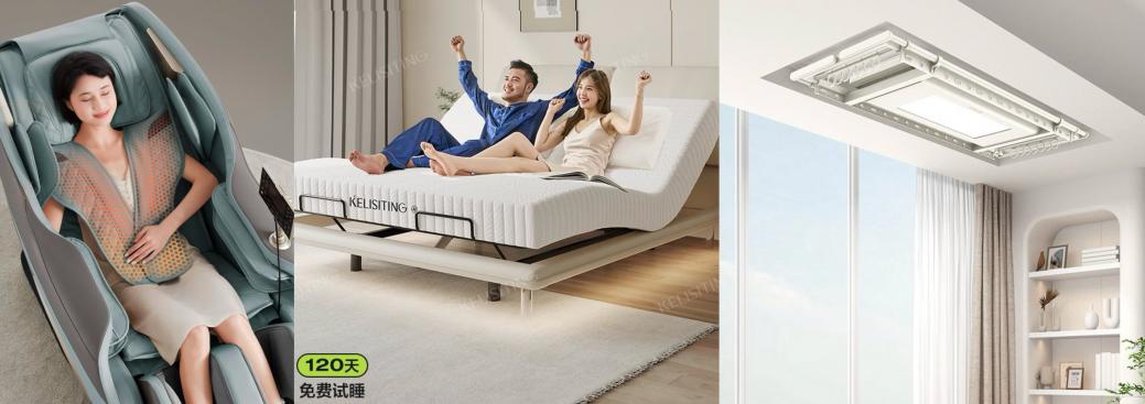 在京东家具开仓节会场,张先生发现一款他心仪已久的顾家家居功能沙发正在做活动。这款沙发原价7千+,5折后只要3599元,既是沙发又是按摩椅,能实现肩颈、腰臀、足底的全方位按摩,还有艾草热敷功能,在家就能享受豪华spa,全家人节省了外出按摩的大笔开支!一张好的智能床对于提升睡眠质量至关重要,在众多产品中,他选中了KELISITING智能电动床,集电动升降、定时唤醒、防打鼾模式等多种功能于一体,悬浮床、功能床架、乳胶/零压棉床垫三件套原价6千+,活动期间通过领取优惠券、享受补贴后仅需4千出头就能拿下,而且还能免费试睡120天,试睡不满意全额退款,简直太贴心了!家里的老式晾衣机又笨重又占空间,张先生一直想换一个最新款的智能晾衣机。这次在京东开仓节,好太太智能晾衣机只要999元,超薄机身可以隐形安装,节约空间,而且承重力强,晾晒全家的衣服都不在话下。