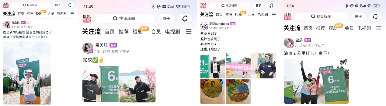 活动前后跑者嘉宾纷纷在搜狐视频“关注流”分享备战状态、跑步心得、沿途美景以及诸多精彩花絮,引来众多网友围观打Call,在线上掀起阵阵热潮。