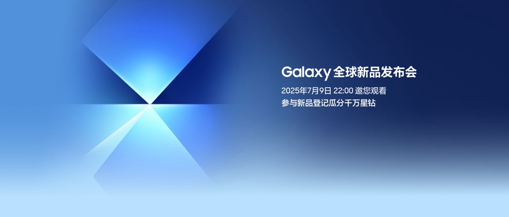 Galaxy全球新品发布会将于2025年7月9日22:00正式举行。随着发布会的日益临近,三星也推出了一系列的新品预热活动。近日,三星官网正式开启了新品登记活动,参与新品登记的朋友,可瓜分千万星钻,以及获赠新品Samsung Care+优惠券等精彩好礼。届时,入手此次Galaxy新品的用户,不仅能够享受三星折叠屏的前沿创新成果与专业智能体验,更可收获超值福利。