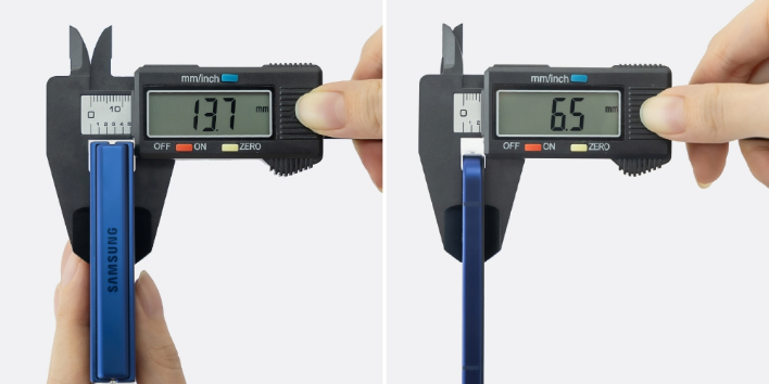 三星Galaxy Z Flip7机身比以往更加纤薄,折叠时的厚度为13.7毫米,展开后更是薄至6.5毫米