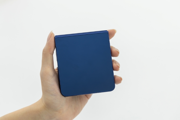 将三星Galaxy Z Flip7从盒中取出,首先感受到的便是这款产品非常轻巧的机身。作为Galaxy Z Flip系列迄今为止最纤薄的机型,它在折叠状态下的机身厚度仅为 13.7 毫米。