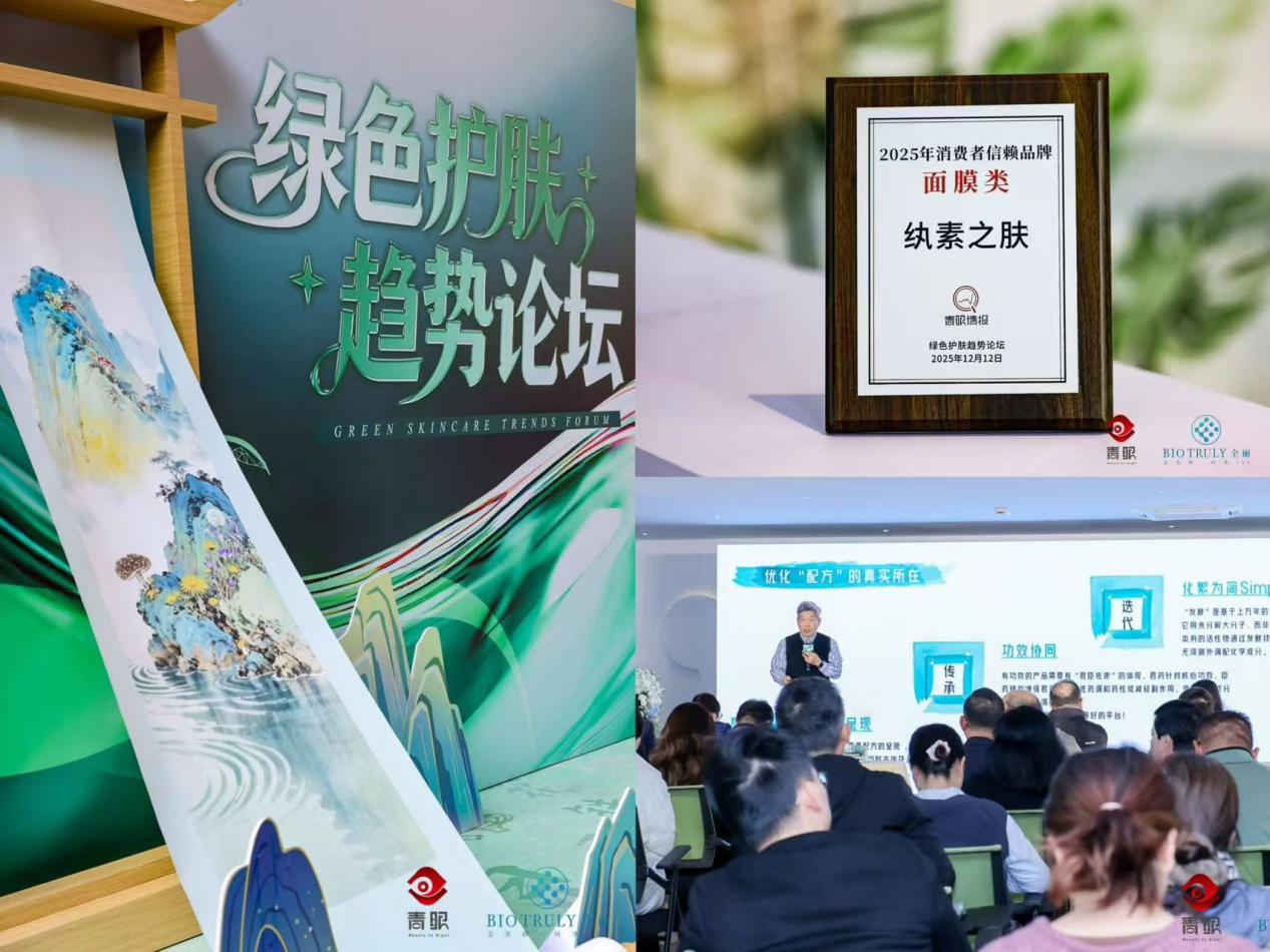2025年12月,上海——在由行业智库青眼情报与上海全丽生物联合举办的“绿色护肤趋势论坛”上,纯净美妆品牌CODEMINT纨素之肤荣获“2025消费者信赖品牌” 奖项。该奖项不仅是对品牌理念的认可,更从消费端验证了其产品商业化路径的成功,为美妆行业践行“成分有效、体验升级、用户忠诚”的高质量发展模式提供了可参照的案例。